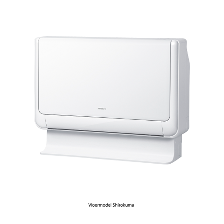 Een Hitachi Shirokuma Vloermodel is flexibel te installeren, bij demontage van de voet kan de staande unit ook vlak boven de vloer worden geïnstalleerd. Door de grotere dynamische luchtcirculatie kan de lucht elke hoek van de ruimte bereiken. U kunt uw ruimte eenvoudigweg met een druk op de knop van de afstandsbediening verwarmen of koelen.