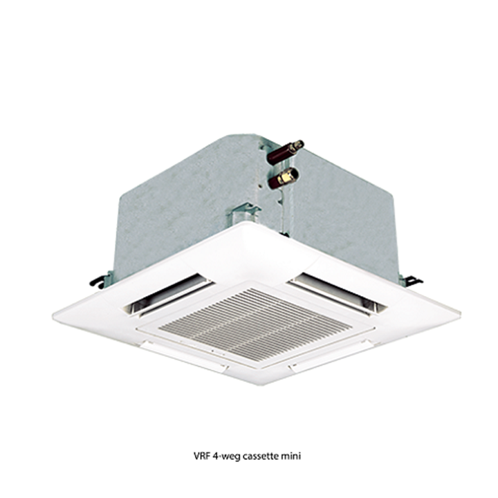 Een Hitachi 4-weg Mini Cassettemodel heeft de perfecte afmetingen voor inbouw in rasterplafonds. Daardoor kan de unit in een standaard plafondpaneel van 600 x 600 mm worden aangebracht zonder invloed op de andere panelen of de installaties te hebben. Met slechts 1,1 kW koelvermogen behoort de RCIM-cassette tot de kleinste units op de markt. Daardoor is deze ideaal voor gebouwen met een geringe energiebehoefte zoals bijvoorbeeld passiefhuizen.