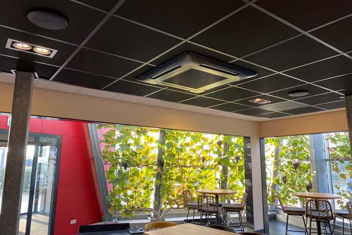 Met een duidelijke visie voor ogen heeft The Vineyard het pand omgetoverd tot een leuke plek die nu dienstdoet als restaurant, zalenverhuurlocatie, dagopvangcentrum en evenementenlocatie. Maar dat was niet het enige wat er op de planning stond. Begin 2022 deed Stichting The Vineyard een beroep op de expertise van een team om na te denken over de klimaatbeheersing in dit bijzondere gebouw. Het bestaande klimaatsysteem was verouderd en stond op het punt om het op te geven. In samenwerking met een ervaren installateur werd er een indrukwekkend VRF-systeem ontwikkeld om in fase 1 de kantoren, zalen en grote feestzaal van koeling en verwarming te voorzien. Dit geavanceerde systeem kon zelfs op afstand worden bediend en aangepast met behulp van de geavanceerde CS Net Manager.